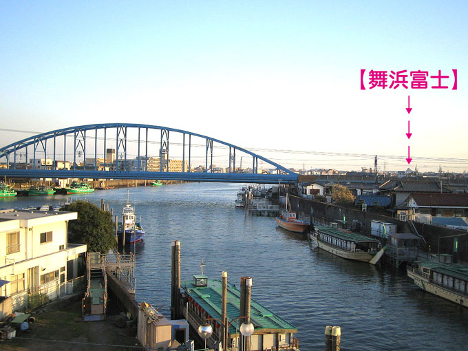 ふたつ下の記事に「水運」のことを書きました。 通説では、黒ボクは甲州朴(【朴】は石へんを打ちたいのですが) という、甲州側からの溶岩を使っているそうなんですが 本当のところはわかりません。 江戸時代には、甲州からのボク石は、船で相模川を下り、 海路から江戸に運びました。 高田富士の場合は、神田川をさかのぼって牛込御門外の 揚げ場に揚げ、そこから荷車で運んだそうです。 揚げ場(あげば)は現在の飯田橋の対岸です。 ところで、学者が言うには、千葉県の浦安あたりはボク石が 手に入らなかったから富士塚には玉石が多いとのことですが、 私はそうとも思いません。現にふんだんにボク石を使って いる塚もあるし、水路にはなんたって江戸川がありますもん。 江戸川の下流は富士講の盛んな土地です。 富士塚も多く残っている船橋が近い。浦安も近い。 ボク石が舟で運搬されたという説も読んだ記憶があります。 ボク石の少ない塚に関しては、費用が少なかったことと 江戸川区の塚によく見られる力石(力くらべのための)を 塚の下のほうに使ったことが理由かと思われます。 画像は、江戸川の支流にあたる「旧江戸川」です。 たぶんこの川もボク石を載せた船が下ったことでしょう。 この川の両側にはたっくさんの富士塚があるのです。 右岸は東京都江戸川区、左岸は千葉県浦安市。 手前は中洲というか、ちっちゃな島、妙見島です。 舞浜富士っていうのはジョークですからね〜♪ (デイズニーシーにあるプロメテウス火山です)