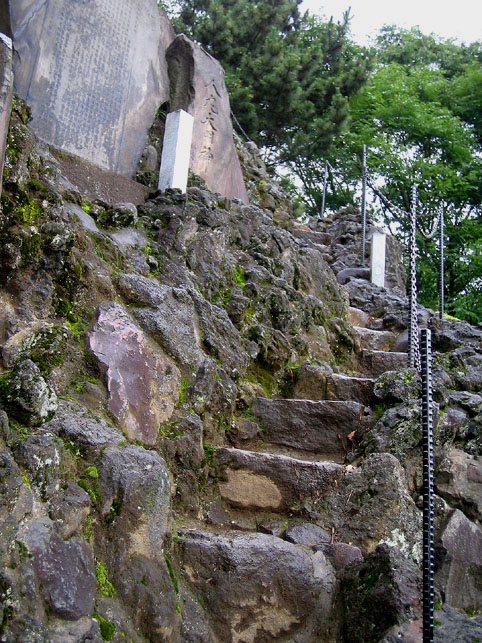 やっぱりこわい。珍しく石碑に目もくれず足場を確かめながら登りました。なぜって、強風なんです。