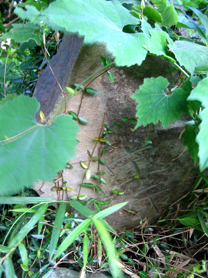 植木の多い塚は夏がきれいですが、とにかくぼうぼうに生い茂るため塚全体が埋もれてしまいます。蔓系の草の下には、ほら「宝永山」がかくれていたり。