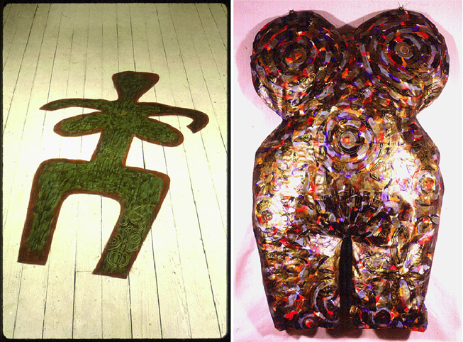 GODDESSのことを書く前に、ちょこっと♪ 私はいろんな作品(絵画、オブジェ、インスタレーション、パフォーマンス)を作ってきましたが、その中の【GODDESSシリーズ】から古い作品をアップしました。沖縄好きになる前からまた富士塚マニアになるず〜っと前から、GODDESSのテーマでいろいろなものを作っていました。 左はキャンバス地に蜜蝋で描いた平面。右もキャンバスに描いた袋状のソフトスカルプチャー。長寸は2mくらい。 この頃、私のGODDESSのイメージは、力強さやマザーアースに通じる大きさ、また、ふくよかな女性に対するおぼろげな憧憬。それらをビジュアライズするだけでした。救済や慈悲の概念はなかったかもしれません。でも、その伏線があったからこそ、富士山/富士塚をテーマにしながらもLADY KONOHANAにこだわりがあるのだと思います。 そして、沖縄でまた3つのGODDESSとの出会いがあり、私の【GODDESSシリーズ】に息を吹き込んでくれたように思いました。 つづく。