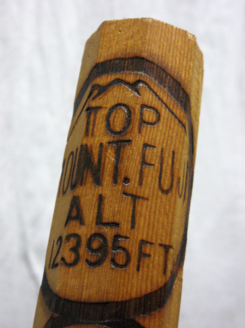 昔よりも富士山が好きになったのは、正直なところ、富士塚のおかげと言えます。 富士山を嫌いになったことはまあない。遠ざけようとしたことはあるけど(笑)。でもフツーに富士山好きって程度だったら、こんなに富士山に興味はわかなかったでしょう。美しいだけとか登山するだけなら他にも山はある。何だかわからないけどココロに刻まれるその存在。その理由に向き合えたのは、富士塚のおかげ。富士塚に出会えたことで「ナゾ解き」が始まったからでした♪ ↓これは10年近く前の富士登山で、頂上の奥宮でいただいたものです。 そしてこれ。金剛杖の先端にあるのは、頂上の山小屋で捺された焼印です。 来年あたり、調子がよければまた登っちゃおうかなー?(母と一緒に???) 富士登山を甘く見ているわけではないけれど、丸藤宮元講社の井田先達(今年1月に他界された)の言葉を思い出せば、そう辛いこともないでしょう。 「富士山は征服する山ではない。有り難く登らせていただくお山であります」 ではでは、どなた様もよいお年をお迎え下さい。 来年もまたたくさんの引き出しを開け、富士塚記事を書きますので〜。