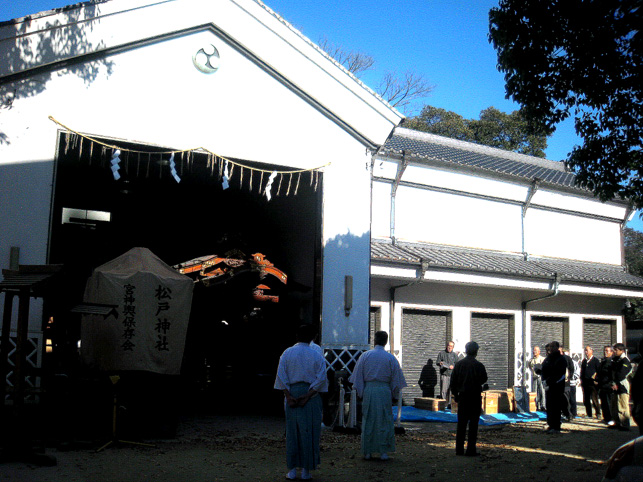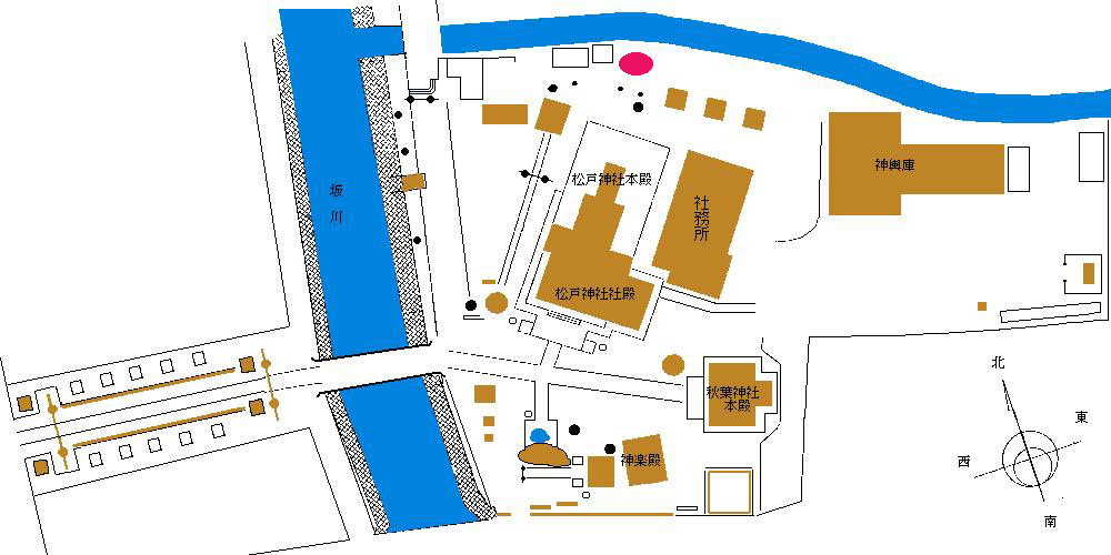 ******* いろんな神様がいる それほど広くない境内に、たくさんの神社があります。 私たちは、坂川に沿って北の入り口から入りました。 図面の上部、ピンク色の楕円のところが富士塚です。浅間神社と言わずに富士嶽神社 と呼ばれます。 来年催される3年に一度の大祭の為の、神輿もここの神輿庫に大事に保存されています。 12月のある日、保存会の人たちと神官たちが、定期的な神輿の点検を念入りにしていました。