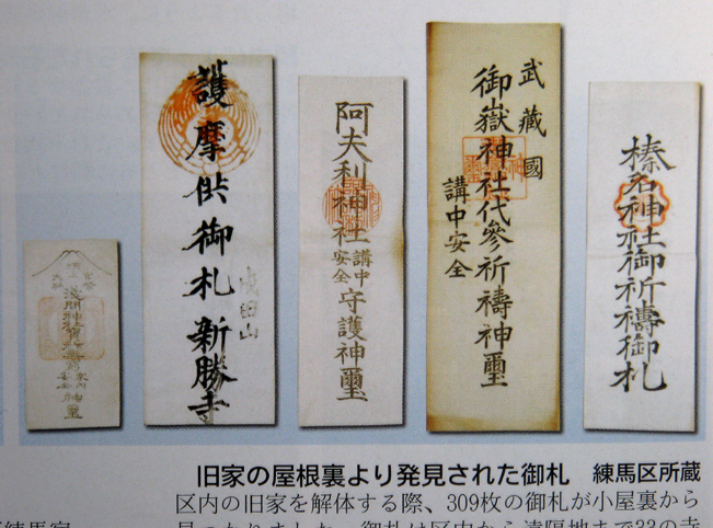山国ニッポンだから、山岳信仰が昔から根強くかつ広範囲だというのはわかっていたけど。。。こうもたくさんあるとは。 今回は、関東限定のレクチャーだったのに2時間では短くて短くて。西海先生はどんどん話を飛ばし、内容もあっちこっちに及ぶ。予備知識のない人には何のことやらだったでしょう。でも、お話が面白かったので、(私はなんとかついていけましたけど)そうでない人にも楽しい時間だったみたいです♪ 現代は情報が簡単に手に入るし、いろんな人とのつながりも持てる。でも昔の人は血縁者以外で助け合うことはそれほど容易ではなかったのです。同じ信仰を持つ人達との集まりはもちろんですが、日常生活で助け合う為・結束する為に「講」はごく自然に必要だったのだ、ということがよくわかりました。(山岳信仰に関係なくても講の種類はおびただしい。何でも講になっちゃう。「マッチ講」なんてものもあったとは!まあそれはまたの機会に。。。あ、女人講は近々書くことになるかも) で、日本に霊山は数あれど、関東の山々はまあこんな。 私が気になる富士講は「出羽三山講」「木曽御嶽(おんたけ)講」同様、関東から離れた山を信仰するものですが、山が近くにあって盛んな講は「大山講」「秋葉山講」「武州御嶽(みたけ)講」「三峰講」「成田不動講」「筑波講」「筑波山大同講」「加波山大同講」「足尾山大同講」等まだまだ。。。 大山講は結構ポピュラーですが、北関東もこんなディープです。 講はひとつに入るとは限りません。一軒で数講に入るのは日常でした。たとえば、下の図録にあるように、旧家の天井裏から発見された御札からは「富士山/成田山/大山/三峰山/榛名山」を信仰していたことがわかります。(こりゃ年中忙しかったね〜と思われますが、お山の信仰は自分で行かなくても富士塚やミニ木曽御嶽山のような、築山が村内にあったり「代参=代表者が参詣」というシステムをとっていたのです) ついでにローカルな話。練馬区で催された講義というわけで、資料室にも練馬の面白い品々がたくさん。これは「上石神井村絵図」にある「道者道」の部分(図録から)です。 今も富士街道ってありますね。練馬区を北東から南西に横切る道。これが相模の大山へ続く「富士大山道」のことで、この図で「道者道」と書かれた道のことです。近くに私の馴染みのある土支田町(村)も出ていて、しみじみ面白く感じましたよ〜♪ つづく。。。(たぶん)