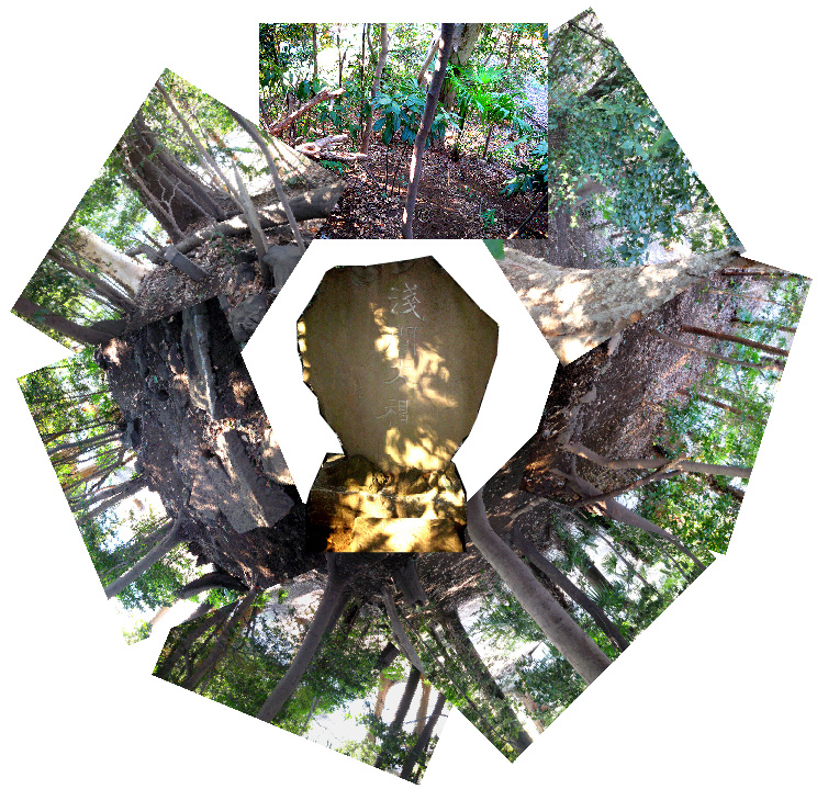 外から富士塚は見えない。でも富士塚の中から外の様子はよくわかる。
