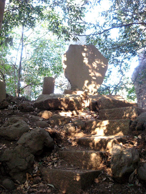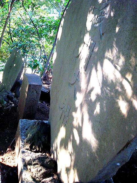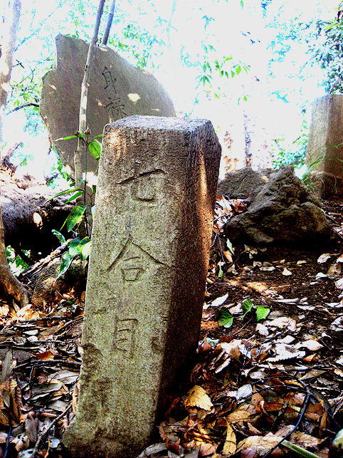 リュウテツ(流山電鉄)流山駅近くの「流山富士」から「流山街道」に戻り、北上しました。広い道をずんずん行きます。常磐自動車道をクロスし、左手に香取神社を確認しながら進むとしばらくして道が狭くなります。松戸野田線という道路に変わります。もう野田市に近いところです。Y字になる左を選んで入ったところに農業用水路があります。そのかたわらにこのジャングルがあります。 ジャングルは辻にあって、地図上で「浅間神社」と記されているポイントがこの富士塚のことでした。人家がまばらだった時代を想像していたら何だか楽しくなってきました。 こんもりした一隅は、神社の社がなくても地元の人にとっては神様のいる場所です。この木々の中に富士塚があったのです。こういう場所は、立派な神社とはまた違ったおもむきの「聖地」。とてもいとおしい気持ちになりました。 頂上にある浅間大神の石碑には明治16年と刻まれていますが、江戸時代(享和、文化)からの庚申講などの石像、石碑もここに集められていました。 石段をゆっくり登ると、いくつかの合目石があり、頂上に浅間大神のほか、「身禄霊神」の碑がありました。浅間大神と身禄霊神の間には「八合目」の石。ちょっとコンパクトすぎますか?(笑) ボク石があまり手に入らなかったのでしょう。それでも講の世話人の名前がしっかりと刻まれておりました。 ちなみに、富士塚のまわりはこんなのどかな情景が。(ばあさまと孫)