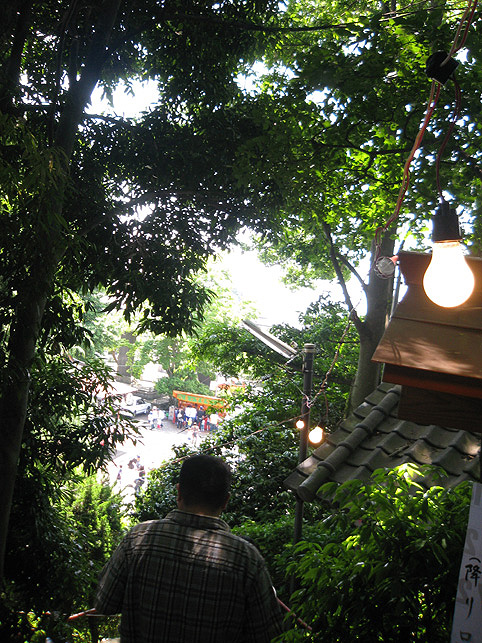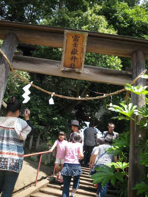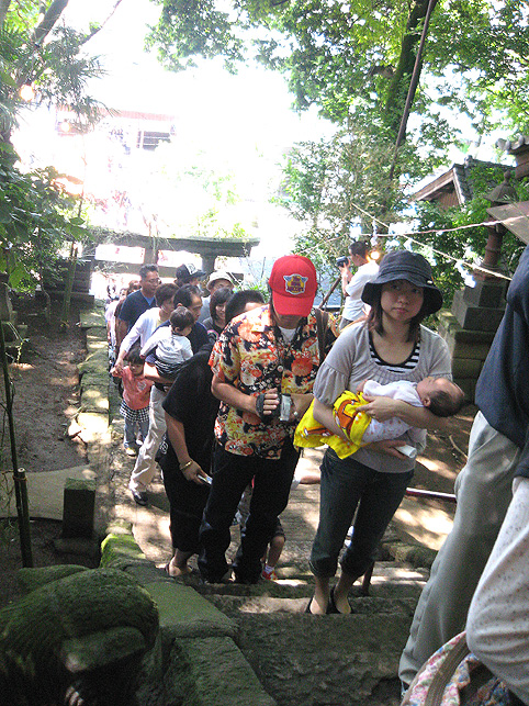 左:下山道。右:まだまだ祈願に登山してくる氏子達。
