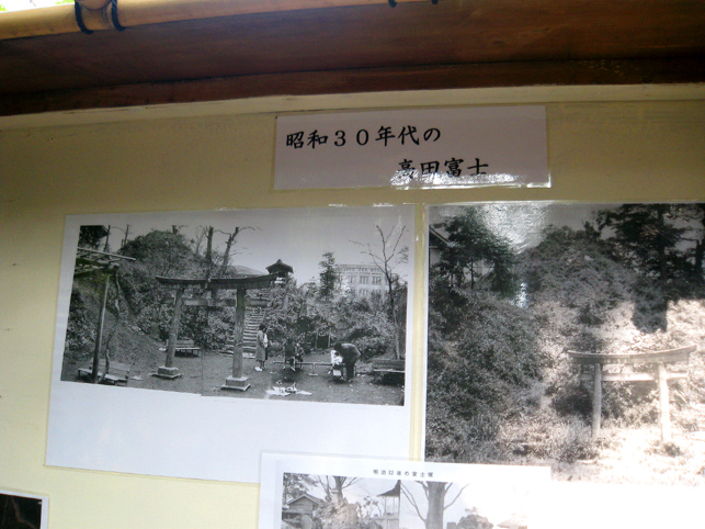 行って来ました。はじめての高田富士。 先人の富士塚研究者による現存する富士塚リストの中には「高田富士」という名前は出てきません。最古の富士塚と言われて有名な高田富士は早稲田大学の敷地拡張のために取り壊されたとして、過去の扱いであります。土地をめぐり、ちょっとややこしいやりとりがあったことは割愛しますが、移転先の水稲荷神社がここ一帯の地名戸塚にあることから戸塚(富塚)富士、富塚古墳跡も由来してか「富塚富士」と通常は言われています。でも、ふつう富士塚移築が頻繁にあっても塚の名前は変わらないこと、水稲荷神社側が高田富士と呼んでお山開きをやっていること、神社の境内に富塚という古墳(これも移築)があってややこしいこと、などの理由から私は高田富士と呼んでしまおうと思います。 もちろん、移築した(昭和40年代に)この塚を指してコレが最古の…と神社が言い切るのはちょっと強引だと思うけど、元の塚にあった石碑とかは全部運んだのだし、もうひとつの塚、古墳の富塚と混同されてしまうことも考えると、「(移築した)高田富士」でいいよな〜と。実際、高田富士の後に富塚をチェックしていたら「これが富士塚ですかー?」と聞かれました。早稲田大学の学生さんでした。 富士塚登山口の手前に設置されていた資料コーナーには確かにコソッと「移築」の文字が。これに気づく人はあまりいないでしょうが。(下の小さな写真群はよその富士塚) まあ、これが最初の高田富士の姿(昭和30年代)だったということで。のどかな風景ですね〜。(私も大泉富士ではこうして遊んでました。昭和50年代ですけど。笑) 少なくとも神社は盛り上げようと頑張っています。この入り口はぐっときます。見せ物小屋っぽくて(笑)。 つづく。。。