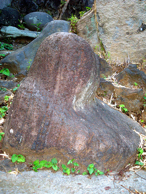 「烏帽子岩」は富士塚には重要なアイテムです。たいていは「えぼしいわ」とか「烏帽子岩」とかの文字の刻まれた碑がのっているのですが、文字がなくてもこれも烏帽子岩じゃないかと思うのがこれら。 どうですかー? 全部、烏帽子のカタチの岩でしょ?可能性高いと思いますーよ。 こないだからどうも気になっていたのですが、先日、音羽富士へ3度目に行った際に「やっぱりな〜」と思いました。これらすべて7合5勺の位置にあり、同じ富士講「丸藤講」の作ったものだからです。(音羽富士は山護講が塚を築造しましたが、塚には丸藤講による石造物も多いのです) 文字を刻まずにカタチで表現とは。う〜ん。私好みです♪ 他には千駄ヶ谷富士、行徳の押切富士にもこれに準ずるものがあり。。。