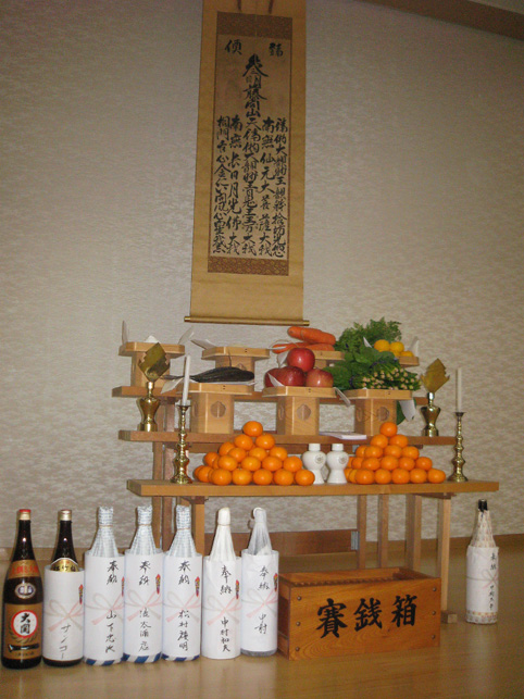 先達が頂上まで運んだものです。頂上では、ゴザの上に広げて