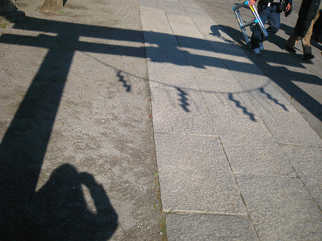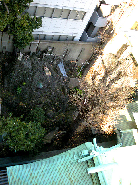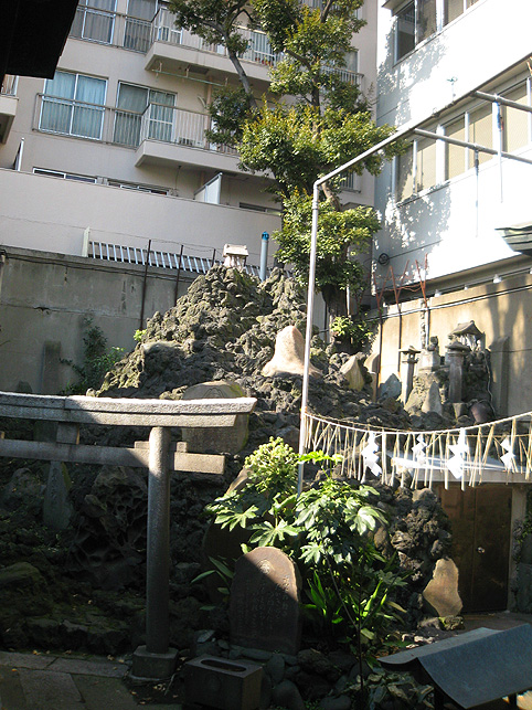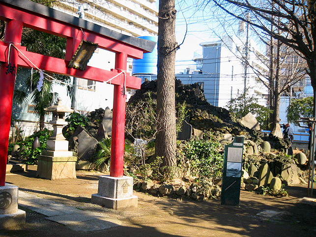 NHK「首都圏ネットワーク」18:10〜19:00の中の 5、6分間と予告しましたが、18:41〜18:49で、約8分間放送されました。 いい番組でした♪ 有り難いです。 では、収録日に私が撮った現場でのスナップをちょこっと載せましょう。 まず、江東区南砂にある富賀岡八幡宮(通称・元八幡)のひょうきん狛犬。 本殿奥に、浅間神社の赤鳥居と砂町富士。日射しは春ですね。 待ち時間に、境内の片隅でキッズと遊びました。いや、遊んでもらった♪ 影を撮るのが好きな私は、鳥居の影をひたすら撮り続けていました。 あ、カメラマンさんが脚立を持って、戻ってきました。 右上の影は、マイクを担いだ音声さんの影ですね。 中央区湊の鉄砲洲稲荷神社にある、鉄砲洲富士です。日が当たってます♪ 番組の中でも紹介された、鉄砲洲富士の上空です。 目立つ石は、烏帽子岩と亀岩です。お中道もよく見えます♪