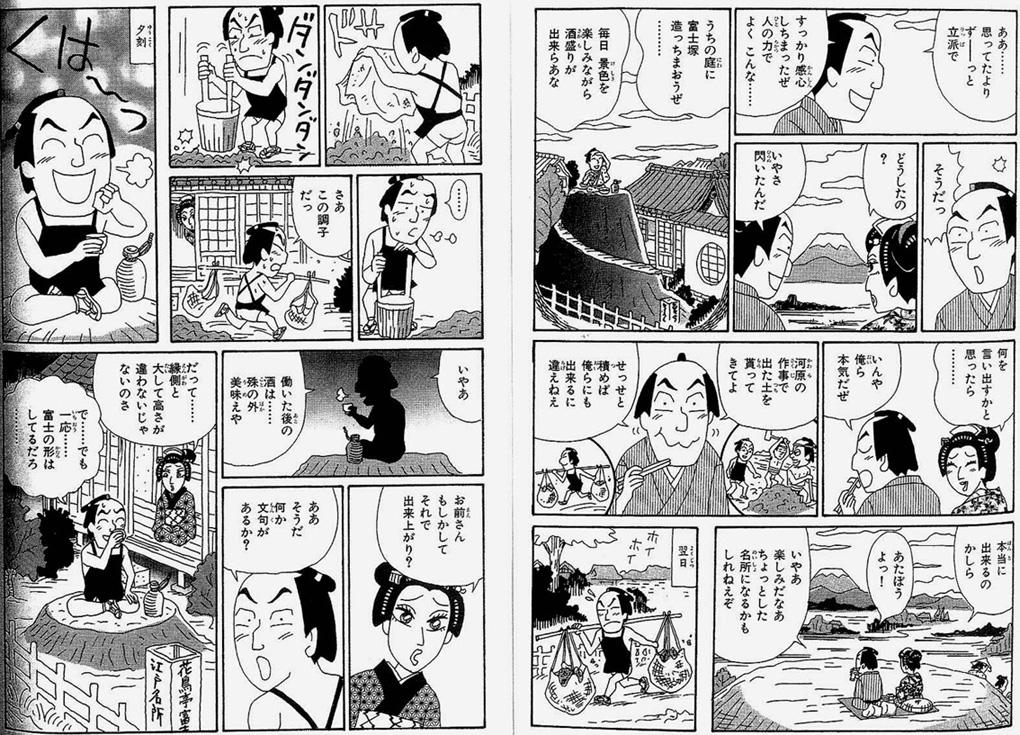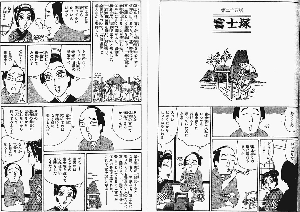 何かでこのマンガのことは知っていましたが、読んだことはなかったです。ラズウェル細木さんの「大江戸 美味草紙 〜食と遊びの歳事記〜」の中から。 先日お会いしたK先生、お送りくださり感謝です! 読みたかったんです。 コマの読み方は、右上から左下に流れます。(あたりまえか) 江戸時代はきっとこんなだったんでしょうね〜♪ 特に、4枚目の子供が面白い!富士塚は、子供にとってやっぱり遊び場です。 思わず、自分の幼少体験を思い出しました。