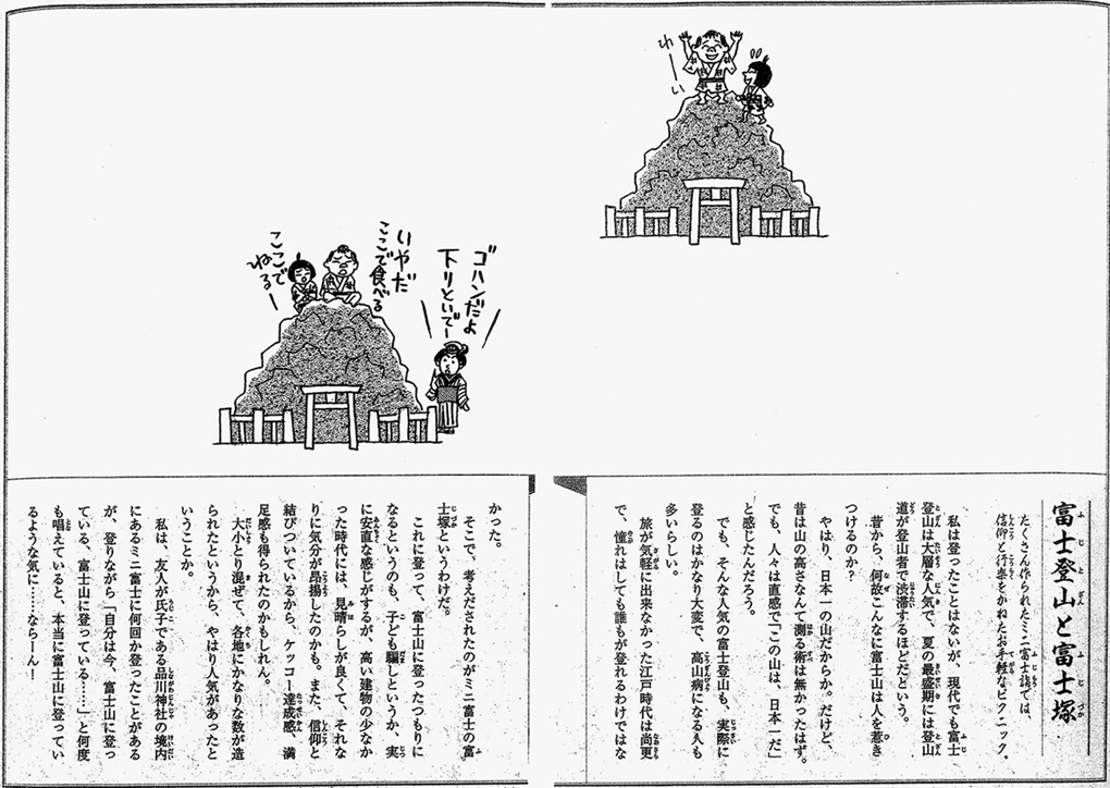 Like this cartoon people used to be fascinated by Fuji's power and were curious what Fujidukas brought in Edo period. But probably not even those days, one can feel something auspicious and thankful from the articial/religious mounds.