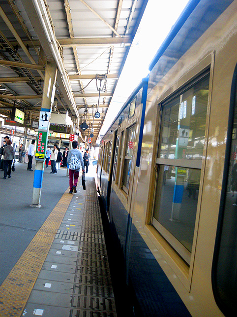 千葉から乗った6両の内房線ローカル。そこに着くまでの総武線車内にも、紙パックの「男山」を片手にサキイカを摘むスーツ姿の人がいたり、缶ビールを飲みながらプラットフォームを歩く人がいたり。。。たしか今はゴールデンウィークなんですよね?