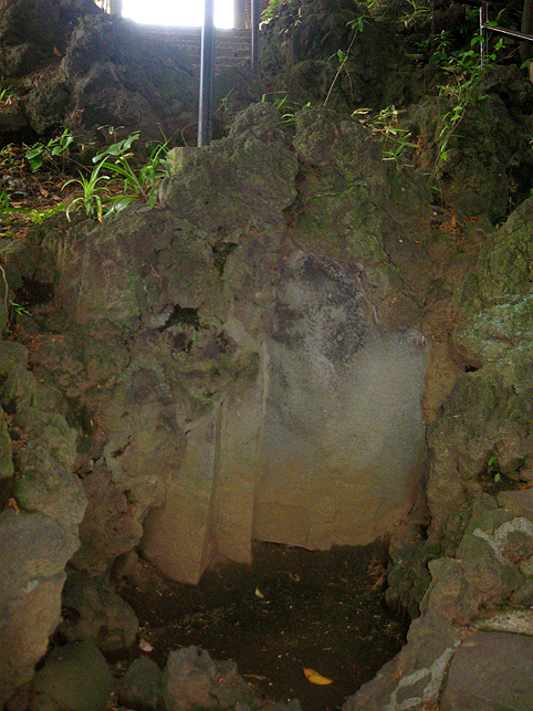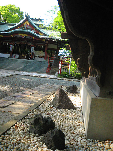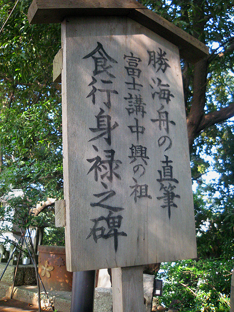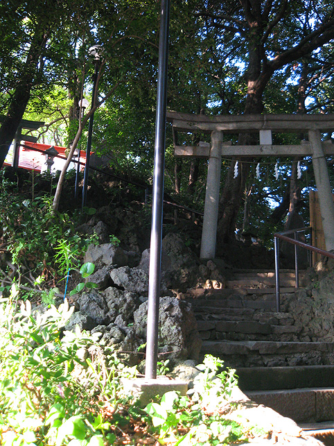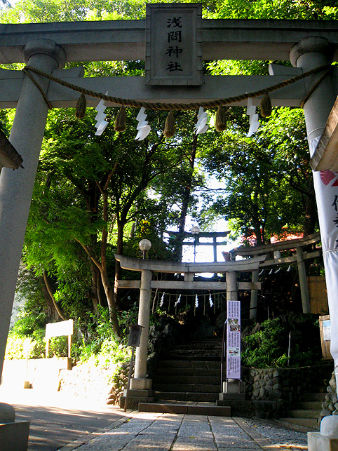 私が富士塚を気にし始めた頃、友人から「多摩川沿いに富士塚があるよ」と誘われ、一緒に出かけたことがあります。 通称「多摩川富士」です。「ホントだ♪ 富士塚だねっ」確かに小山に溶岩が貼りつけてあって登山道もある! 「でも、ずいぶん大きな富士塚だね」 頂上には浅間神社(多摩川浅間神社)の社殿があります。その造りは、東京都内では唯一の浅間造です。【浅間造】とは、静岡県富士宮市にある「富士山本宮浅間大社」の様式で、「正面五間側面四間」の上に、「三間社流造」の本殿が載っているという、 二重構造のことです。 こちらの社紋のひとつ、桜の花はコノハナ様のシンボルでもあります。(駒込富士神社でも同じ紋の提灯が出ますよね) 頂上である境内に神楽殿があり、その足元には溶岩を配した枯山水があしらわれています。 手水鉢の向こう側に空が広がっています。 富士塚のたもとにある社務所の屋上にあたるこの場所からは、多摩川が目の前に見え、 晴れた日の夕刻にはこんなふうに富士山も拝めます。 でも、神社の方によると「これは富士塚ではないのです」。一般的にもこれは富士塚とカウントせず、私も本には紹介しませんでした。その理由。もともとこの山は古墳であり、そこに浅間神社を勧請した形態だったので、先人の富士講研究家たちが「浅間山」の範疇に入れていました。山の上に浅間神社があるってことですね。 神社の御由緒によれば、鎌倉時代にさかのぼります。源頼朝が豊島郡滝野川松崎に出陣した折、夫の身を案じた妻北条政子が後を追ってここまで来ました。わらじの傷が痛み出して多摩川畔で傷の治療をし、傍にあったこの古墳、亀甲(かめのこ)山に登ってみると富士山が素晴らしい姿を見せた。そこで、自分の守り本尊である富士吉田の浅間神社に向かって夫の武運長久を祈り、身につけていた「正(しょう)観世音像」をここに建てた。村びとはこの像を「富士浅間大菩薩」と呼んだことから、ここが多摩川浅間神社の起源となったということです。 千葉県の「稲毛浅間神社」のように、こちらも富士講ができるずっとずっと昔、コノハナ様が浅間神社の祭神として登場する以前には、いくさの神だったようです。では、これはただの「浅間山」でしょうか。富士塚ではなく。 いったん、山を下りて観察してみましょう。 すると、登ってすぐのところにこんなものがありました。石板で塞がれているものの、これは胎内に見えてなりません。 そして、中腹には「小御嶽石尊大権現/大天狗/小天狗」の碑。傍に石祠もありますが、 古い石祠は頂上の一角にも。そして、「目玉」は、 頂上近くにある、勝海舟の直筆「食行身禄」の文字であります。 宮司が言うには「勝海舟が富士信仰があったのではないでしょうね。地元の富士講の誰かが、勝海舟に書いてもらってそれを碑に造ったのだと思います」 真偽はどうあれ、ここでちょっと面白い設定ができます。 富士塚になるためには、4つのパーツ「胎内」「小御嶽」「烏帽子岩」「奥宮」が必要だとすると、あらら、全部揃ってるみたい??? 先の塞がれた洞窟を胎内、勝海舟筆「食行身禄」碑を烏帽子岩にあててみると、ですけどね。 「ホントそうですね〜♪」参加者の方たちとそんな話をしながら、登拝を楽しみました。はい。楽しんでこそ、そして、有り難いという気持ちになってこそ、御利益があると思います。どれがあっててどれが違うから、と穿った見方をしていると信仰の本質を見失いますね。(以前から私は、宗教と信仰は別だと言っていますが、先日も同じことを言ってらした方にお会いしました。嬉しかったです) 文献を探したり研究に関しては、専門の方たちに任せましょう。(調査が必ずしもあっているとも限らないし)それよりも、キモチが大事♪ 神社にしろ、富士塚にしろ、庶民のためのものです。今ある姿に人々が手を合わせて「有り難い」と思うなら、それがイチバンです。 いずれにしても、こんな石碑やあんな講碑があったりするから、限りなく富士塚に近い浅間山と言ってもいいかも? 塚っぽいのは、南斜面から東斜面のあたりですけどね。 やはりこのあたりに富士講があった証拠ですね。渋谷道玄坂に元講があった「山吉(ヤマキチ)講」の講碑です。金名水、弘汲元、南北講社。。。 さらにおまけの記事もあり。。。 ★★★★★★★★★★★★★★★★★★★★★★★★