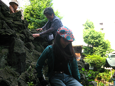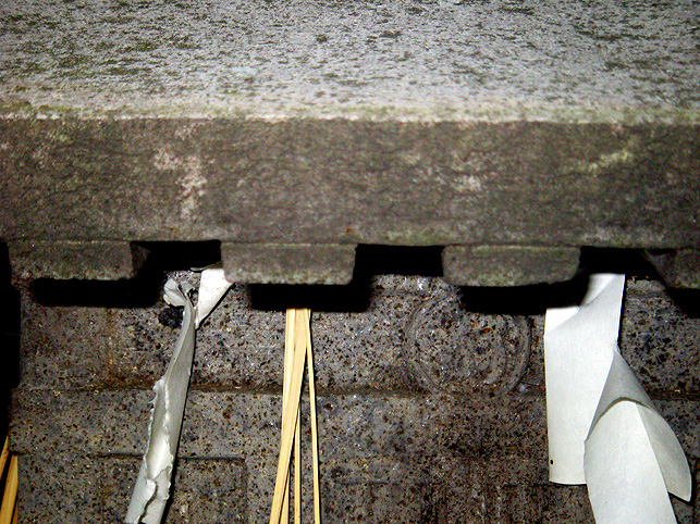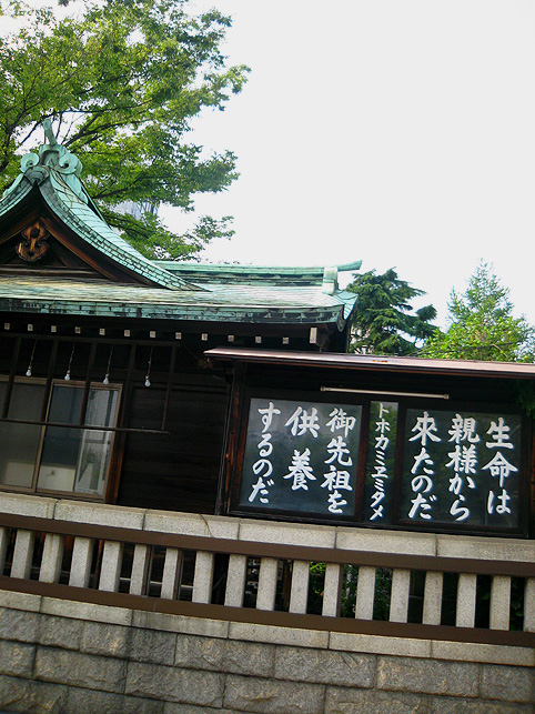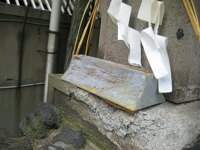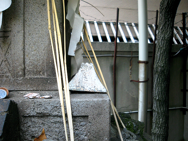 中央区にあるただひとつの富士塚、鉄砲洲富士はこんなに急勾配です。 平均45°ですが、場所によっては60°くらいありそうです。 山は、登るよりも下りるほうが困難ですね。ここに何度も訪れている私でもヨタヨタであります♪ さて、頂上にある奥宮です。 今まで気づかなかったふたつのこと。 屋根のすぐ下に見えるのは丸藤講の紋。 そして祠の台座にあった富士山型の物体! ↓左 ↓右 半透明の合成樹脂に白いマットな塗料を塗った感じです。 何でしょう?何でしょう? 明らかにどこかの装飾に使われていたものだとわかりますが。。。 う〜ん。う〜ん。神社に問い合わせようかと思いましたが、顔見知りの宮司さんが不在だったのであきらめました。でも、ナゾが増えると楽しみも増える♪ 楽しみはとっておきましょう。 鉄砲洲稲荷神社を出ると、こんなメッセージが飛び込んで来ます。 はい。親様ご先祖様には、この命をいただきまして本当に感謝しております! それは、富士山信仰の原点でもあるのです。 しかし、トホカミエミタメ(遠神恵賜/吐菩加美依身多女/吐普加身依身多女)は、呪詞であり祓詞であり。。。アマテラスオホミカミと並んで、復古神道のための言霊でもあるそうです。“鎮魂行法”として「鎮魂」状態に入るための言葉とも言われますし、また、森羅万象をあらわしているとも言われます。とすれば、富士講の教典にも通じるところがありますね。(調べてみます!) ★★★★★★★★★★★★★★★★★★★★★★★★