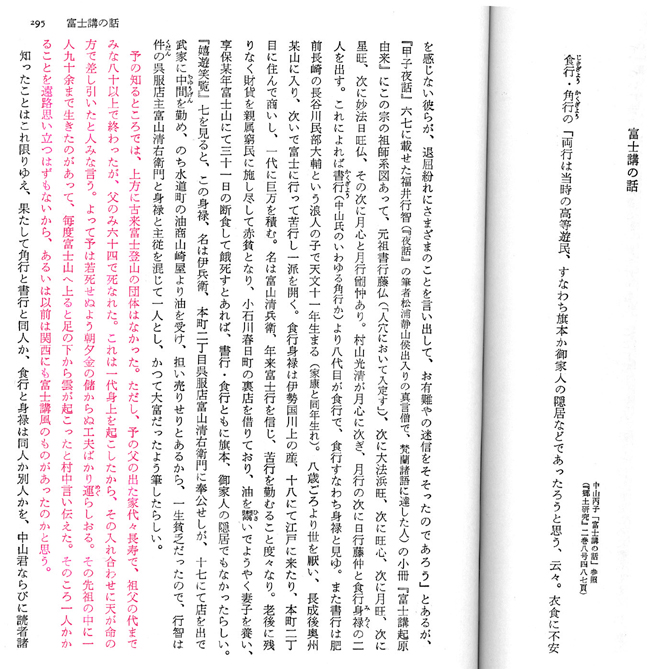 2週間後には、富士吉田の火祭りツアーに出かけます。 富士塚ツアーの番外編でもあるこの旅には、私と御縁のある方たちと一緒に、8名で参ります。 参加者の方たちは、皆、富士塚/富士山好きですが、「富士山と熊野の両方が好き」の方も複数いらっしゃいます。 私自身、富士山信仰と熊野信仰は切り離せないと思っている(熊野信仰がなければ、富士講は盛り上がらなかったと)ので、今回そんな方たちと御一緒するのはとても楽しみなことです。 さて、(富士山信仰と熊野信仰の関係についてはまたの機会に書くとして)熊野で思い出すのが、南方熊楠です。 熊楠はさまざまなことについて書き残していますが、「南方随筆」の中で、少しだけ富士講にもふれています。(確かに関西にも富士講はあったけれど、関東のそれとは異なります。また、「富士垢離」という修行をする人たちもいました) 熊楠はそのへんの詳細は知らないものの、ちょっと気になる箇所がありました(ピンクに強調した部分)。 「上方に古来富士登山の団体はなかった」としながらも「……あるいは以前にも富士講風のものがあったのかと思う」と書いています。そう思うのは、自分の身内に富士山信仰を持った人物(それゆえか長寿であった)がいたからと。 これはちょっと面白いです。その人物、どんな人だったのでしょうね〜♪ ところで、昨年、私は初めて熊野詣をしました。かねてから憧れだった熊野ではありましたが、自分にとっても意外な縁があり、とても驚きました。 旅の案内人の母(和歌山生まれ)が、幼少の頃一時期住んでいた田辺。そこに熊楠がいたのでした。 田辺では、母の父つまり私の祖父が、田辺中学校(今の高等学校)の校長先生をしていました。そして熊楠と懇意にしていたそうです。(熊楠のほうがず〜っと年上だけど) 南方家がご近所だったこともあり、小学生(低学年)だった母自身も、いろいろ記憶に残っているとのこと。昨年は、当時の思い出話と共に、田辺市内を案内されました。 熊野古道等の様子は、このカテゴリーの中に。 ちなみに、熊楠が世を去った後、祖父は熊楠が卒業した学校(和歌山中学、今の桐蔭高等学校)の校長になりました。これも御縁があると思わざるをえません。 ホント、縁をたぐりよせるといろんなことが有り難いと思うこの頃です。