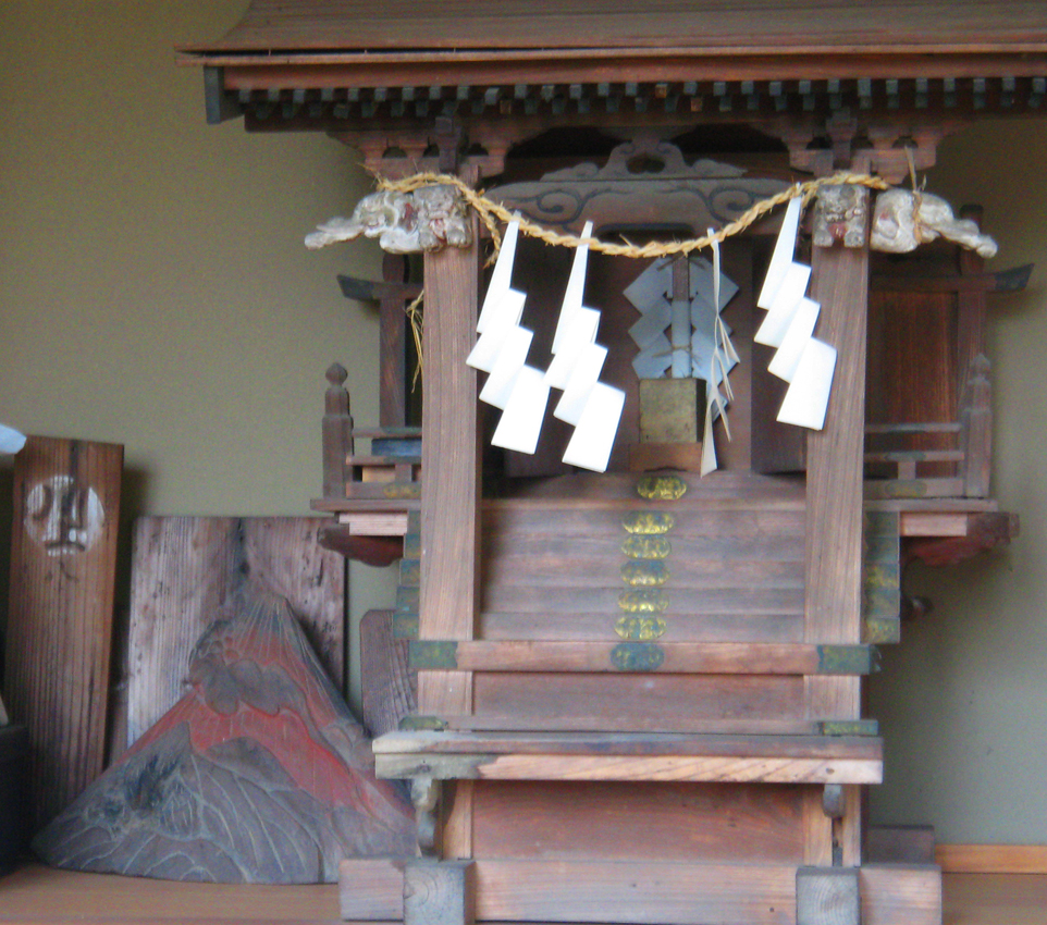 登拝される地元の方々に御神酒をふるまうのは、 奥に見えるのが、 ゴゼンサマ(御神語が書かれた掛け軸)と大日如来碑、奥宮の祠です。 最近、手品の腕を上げたO俣さんが、 「これね〜、『お伝え』なんだけど、こんなこともできる♪」 「えー!早いっすよ」 (Oさんのお兄様は、2代前の先達でした) そうこうしてうちに、富士塚の麓が騒がしくなってきました。 ふと下を覗き込むと、 「人がどんどん集まって来ましたよー。あ!ロウソクの火が消えてる!」 「風が強くて消えちゃったよ〜!」 つづく。。。 Facebook あり〼