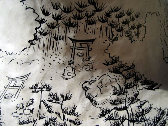 「富士山に登ると穢れる」と言われた女性でしょ。 そうです。江戸時代は、女の人は登ってはいけなかったのです。 今は中高年の女性が大挙して登山してますが、当時の女性たちがそれを知ったらうらやましがるでしょうね。 それでも、富士講の信者に女性もいたのですからお参りはしたかったのです。実際、女性は二合目までなら登山できました。っていってもほとんどふもとですから達成感などなかったでしょう。 あ、でも「富士山は征服するなんていう気持ちで登るものではない。お参りする有り難い山なのだ」という先達の教えですから、たとえ二合目までであっても嬉しかったに違いない。 この絵はわたくしによる、当時の様子の再現です。記録に残っていたものを参考にして。 立体(表面は和紙)に描いてあります♪ ホンモノの富士山の山開きに合わせ、富士塚も6/30と7/1に山開きをします。 普通はね。 でも、この塚は正月三が日だけのオープンです。オープンてのはつまり、普段はフェンスで閉鎖されてるのです。江戸時代に造られた貴重なものなので、国の重要有形民俗文化財となってます。それはそれでなんか寂しい〜。好きな時に登れないってのは。。。 茅原浅間神社境内の【江古田富士】。西武池袋線の江古田駅からでも見えますよ〜。今年のお正月はやんややんやの大にぎわいでした。もともと古墳をベースにして造られ、高さは後ろが5m、前面からだと8m。直径はなんと30m!デカい。江戸時代の特徴で前面だけにジグザグの登山道があり、老若男女が行ったり来たり。登山者下山者入り乱れ……「う〜ん。こうでなくちゃ」とほくそ笑む私でありました。 大天狗像や烏天狗像、太郎坊の石碑もありました。 わたくしの名前が「芙蓉」の花に由来してるせいか、子供の頃から富士山に縁がありました。(私の名前は蓉子といいます。そして富士山の別称を芙蓉峰と言います) 見上げたり登ったり、初夢に出てきたり。。。 でも、私が富士山より好きなのが【富士塚】です。つまりミニ富士のこと。富士山を信仰する富士講の作った人造富士です。江戸時代から昭和のはじめまで、関東各地でたくさん造られました。でも、聞いたことあるけど見たことないという人がほとんど。私は昔から知っていましたが、魅力を感じたのは長い海外生活から帰ってからのこと。理由はいろいろ。そしてマジメに取り組んでます。 富士塚だけでなく、あんなことやこんなこと、いろいろ書きたいので、まあ少しずつ。。。 で、スタートは清々しく(?)いきたいので、盛り塩ならぬ塩富士から。(笑)