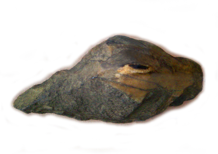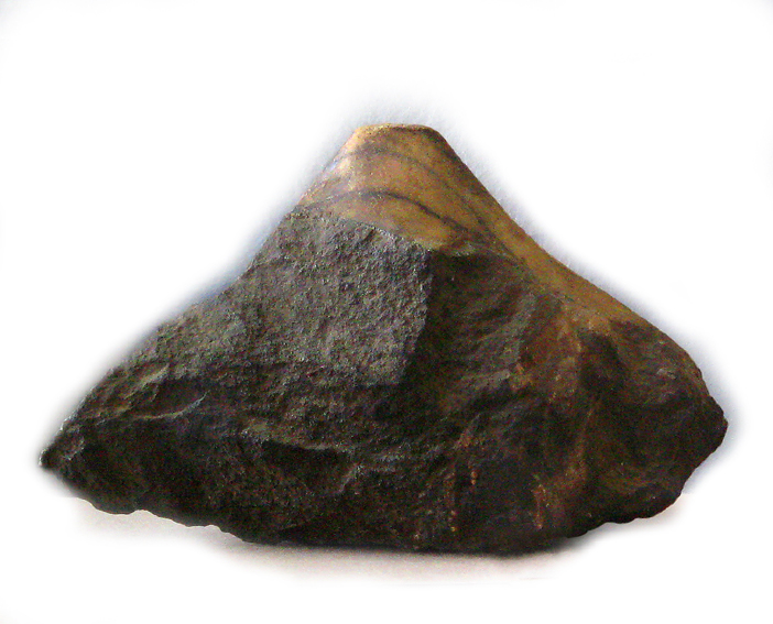 右上の一部を削って磨いたもの。シマシマがとってもきれい♪ そして、残りはそのままってのがイイ。大変美しいものでした。 大きさは、およそ幅40×高さ30×厚み20(cm)。 側面は、 巻物の向こう側に見えています。 これは、6〜7月に開催された「富士講・大山講」の企画展に出品されていたもの。 場所は埼玉県ふじみ野市の上福岡歴史民俗資料館でした。 それにしても、 去年の新宿区につづき、今年は渋谷区、北区と、富士講の展覧会が多かったですね〜。こんなに続くのは珍しいことかもしれません。 ふじみ野市にも富士塚は多いです。もちろん展覧会でもいろいろ情報出てました。 横浜のTさん、教えてくれてありがとう♪ いろんな展示品の中、私はこの御神体にぐっときました。 祭具とのことでしたが、自然石を使ったものはそうそうない。 本当に、いいカタチでした。 富士山型の自然石については、またのちほど。