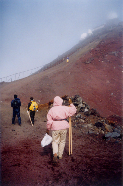 「元祖 山ガール」、私の母も現在富士登山中です。たったひとりで向かいました。 ブランクがあるものの、今回はたしか18度目。 以前の写真から。 頂上の「馬の背」を目指す母です。まだ富士山測候所の多面体ドームがありますね。馬の背ってホントにキツい!短い距離なのに何十分かかったことでしょう。母は私より元気でした。 サプライズ好きな母は、たいていひとりでこっそりと登っちゃう。こちらは、富士山から届いた絵ハガキを受け取って初めて「あら!行ってたんだ〜!」と驚くわけです。今回は、事前に(というか当日だったけど)バレてしまったけどね。 今頃どうしているんだろう。無理はしないとのことだったけど、大丈夫かしら。 富士山もずいぶん変わったでしょうが、自分の足と気力だけが頼りの富士登山は、やはり過酷なこと。若い山ガールたちも、途中から苦しくなり「これは修行かも?」とつぶやくでしょう。 馬の背を目指す母のように、堀江富士(浦安の清瀧神社)の斜面にも、頂上を目指す先達たちがいます。 蝉だって、頂上を目指し。。。 昔の富士講がやったように、私も母の安全祈願をしに神社と富士塚へお参りしてきました。 かつて代参講の性格を持っていた富士講は、先達と数人だけが富士に向かい、留守をあずかる講員たちは彼らの無事を祈ってお参りをしたのです。そして帰還の際には「サカ迎え」といって、提灯を持った村びとが一行を村の入口で出迎えました。 大丈夫と思っていても、祈願する。これは大事なことですね。気持ちはきっと富士山に届くはず。そして当人は富士山のサポートを得られるでしょう。とにかく無事に御帰還ください。 ところで、以前母と登った頃のことをいろいろ思い出しました。 伊豆大島の三原山に登りました。溶岩だらけの光景は私に何かを語りかけ、私はあらためて火山のすごさを知りました。ふたりが見ている先には、海を隔てて富士山が雲から頭を出していました。 バスに乗って見晴らしのよいところに立つと、富士山はもっとくっきりしていました。私はこの光景が忘れられず、この翌月に母と富士登山に出かけたのでした。 おまけです。 火山博物館で火山と溶岩の学習もしてきました。 入口にある巨大な塊。エアーズロックみたい? |
