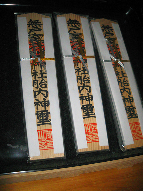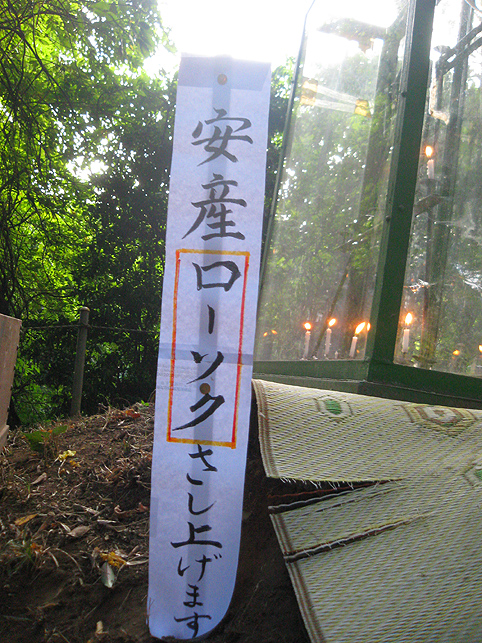 「父の胎内」があったり、「邇邇芸命 ニニギノミコト」が祀られていることも興味深い。(ニニギノミコトはコノハナの夫です) 狭い溶岩の隙間を産道に見立て、「産まれようとする意志」と「産もうとする尊厳」を味わう。この両義牲が胎内くぐりの特徴かと思います。人間は、常に何かを作り生み出しています。生きていく上で起こりうる、たくさんの困難をうまく回避できるよう、ここを通ることは全ての人に対して御利益となるのではないか。 木花咲耶姫が「火中出産」した伝説から発生した「安産の御利益」ですが、それを広義に解釈することが富士山信仰のよきところ。私はそんなふうに思っています。 胎内は「無戸室浅間神社」でもあります。木花咲耶姫が、出産のために石室を閉ざして火を放ったことに由来します。安産祈願のお守りに売られていました。 かつては、胎内くぐりをする行者相手に、膝わらじや白いタスキを売る者がいたり、胎内くぐりを終えた行者に産(うぶ)湯と称して足を洗う水や、祝いの酒をふるまう人がいたそうです。 タスキは、後で妊婦の腹帯にもなるとして、安産土産になりました。また、洞窟内で使われて短くなった蝋燭もお守りになったそうです。こちらは、妊婦が産気づいた時に灯されるもので、残りの蝋燭が消えるまでにお産が容易にできる、という願かけです。 なんと、この蝋燭の安産御守、今でも伝統として頒布するところあり。 数日前、私もある富士塚のお祭りでいただいてまいりました。 それは、次の日記にて。