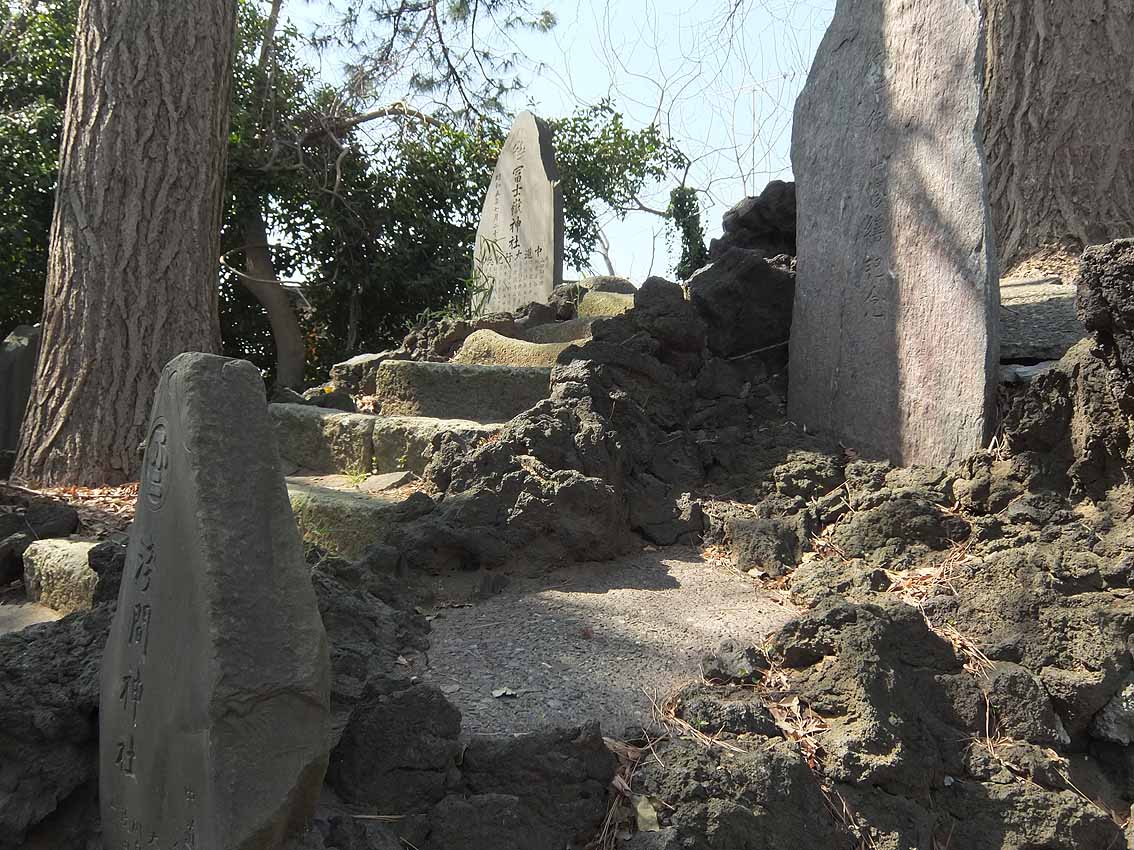 富士講も属することが多い「扶桑教」の本庁境内でした。 (本庁は大正8年に芝神明町にあった旧地から遷され、富士塚は昭和7年に再築されました) 東京大空襲で解体したので、かつての富士塚を見た人はあまりいないでしょう。記録によると、芝にあった富士塚が19m(富士山の200分の1)だったのに比べると、昭和の富士塚は10mほどに縮小されたそうですが、それでも大型だったのですね。 この度、新新富士塚として、「まつばらのお冨士さん」が再築されることになり、今年の夏には披露されます。現在はまわりの住宅に囲まれていることから、4m程度の規模になるそうです(建築基準により)が、再築されるのはうれしいことです。 4月1日、鎮地祭(=地鎮祭)があり、御法家館長、高尾山修験部長、ロッキー田中さん、野口健さん、富士山クラブ理事の青木さん他、めったに集結できない方々も大勢いらっしゃいました。丸伊講の斎藤先達、丸藤宮元講社の井田先達、萬福講の生沼先達はもちろん、横浜の大先達 鴨志田与右衛門の末裔の方も列席されました。 かつての富士塚に建てられていた講碑の数と種類は驚きです。再築の際に動かされるでしょうから、今のうちに必見です。境内にあります。 Facebook あり〼