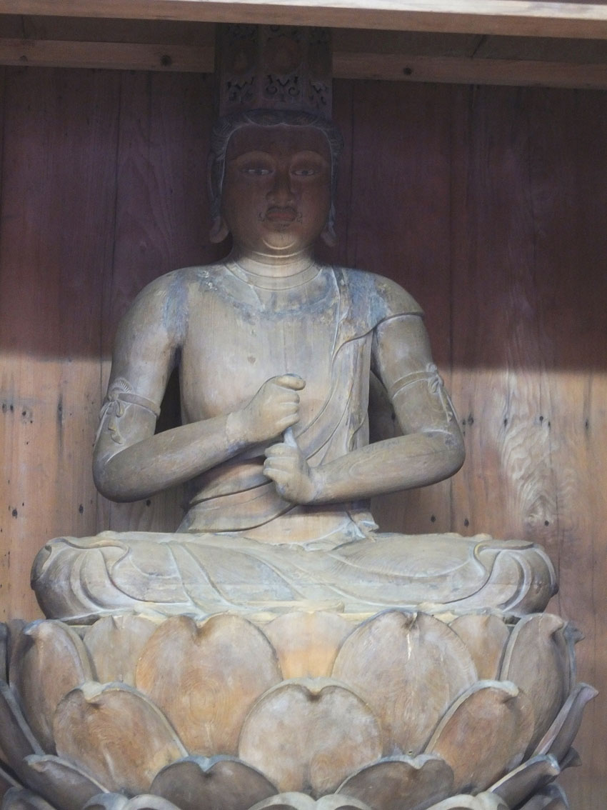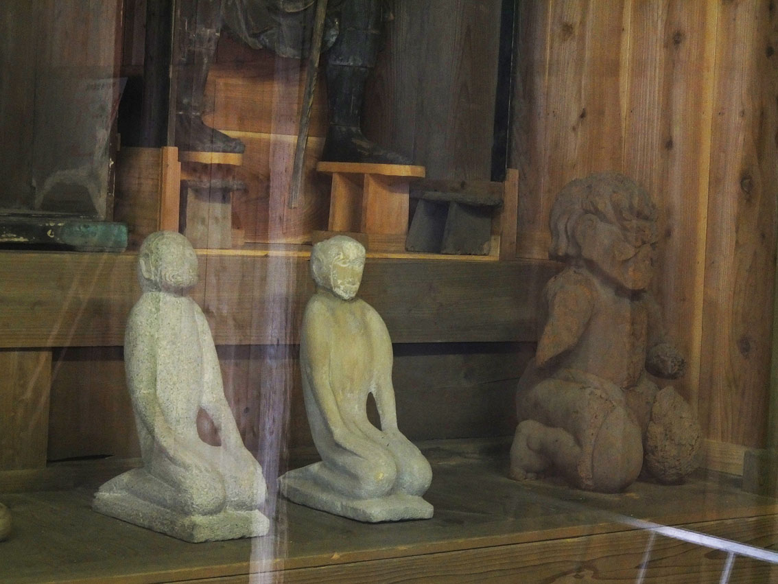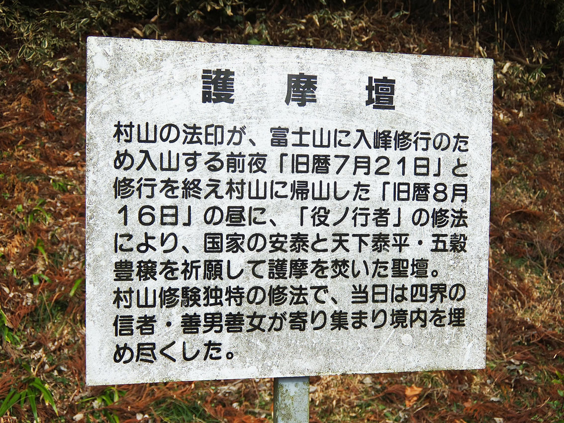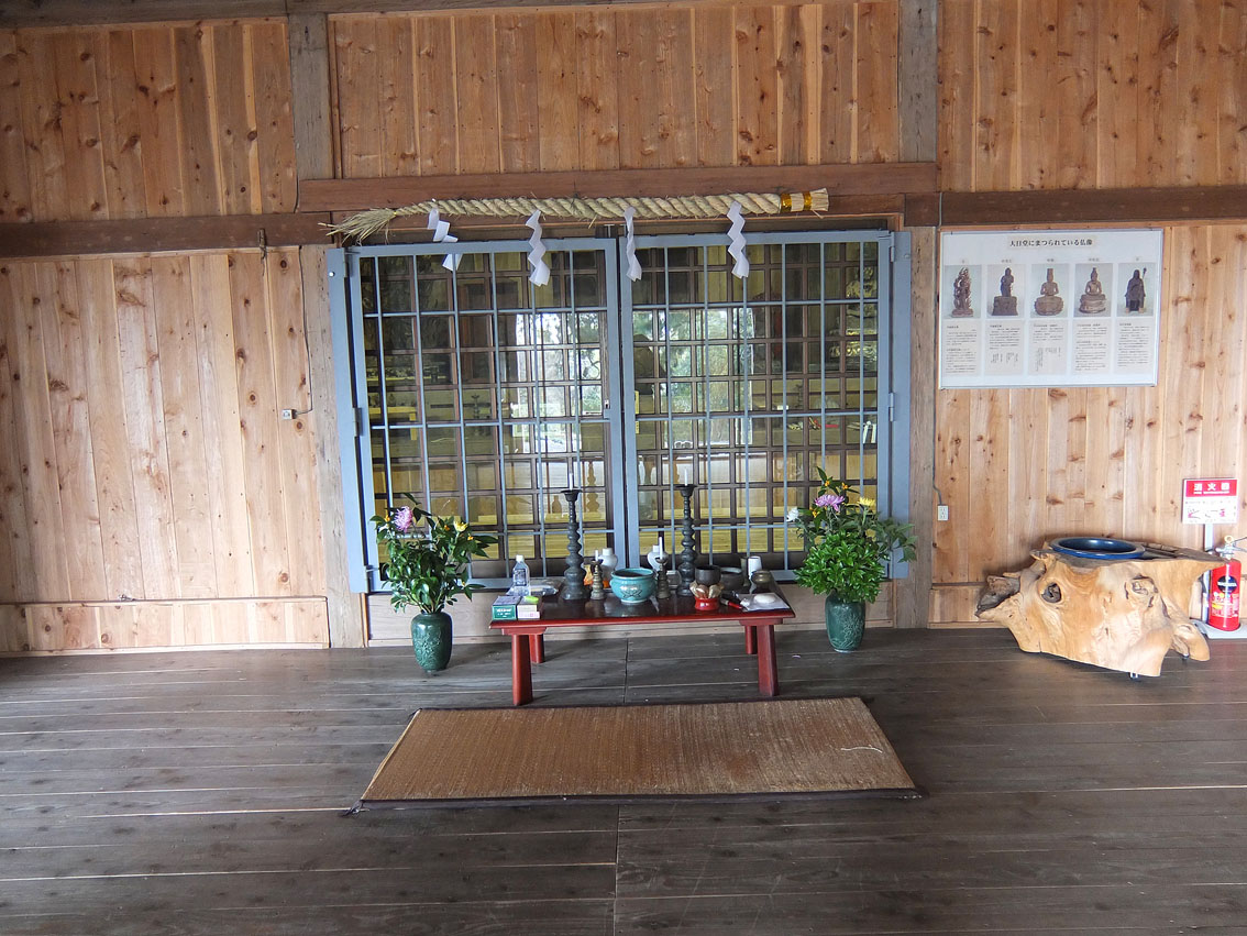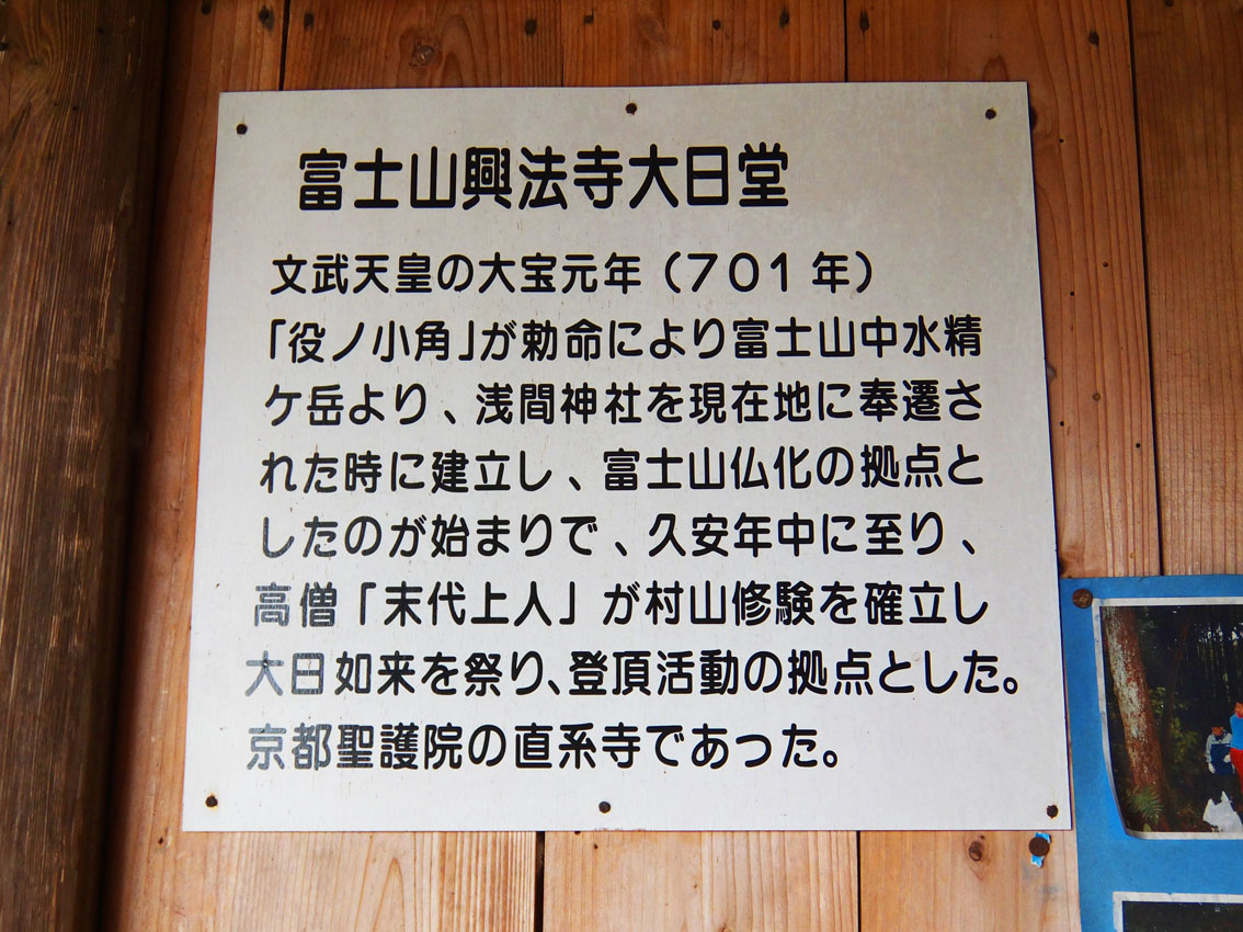 土日や祝日には、地元ボランティアのガイドさんが案内してくれます。 これはラッキー! ガイドさんと一緒に興法寺大日堂に上がることができました。 大日堂には、いくつもの仏像が安置されています。 大日如来像、不動明王像、役行者像のほか、 前鬼もしくは後鬼(前鬼と後鬼は役行者に従った夫婦の鬼です)、 それに、猿らしき2体も! 神仏分離令の際、多くの仏像が破棄されたり富士山の火口に投げ込まれましたが、 (東京の富士塚でも、しばしば頭のない大日如来や猿像を見かけますね) ここにある仏像は、修験者たちによって密かに富士山から降ろられたそうです。 受難を逃れた仏像たちは、「下山仏」と呼ばれています。 「高砂酒造にもかくまった仏像がありますよ」とガイドさん。 「えー!? 昨日高砂さんに行ったのにー。知りませんでした」 高砂酒造とは、富士山本宮浅間大社で見た奉納酒「高砂」の蔵元です。 予約をすれば、蔵の中の下山仏を拝観することができます。 「中央の大日如来様は、とてもいいお顔をしていますよ。近寄って見てください」 と、ガイドさんが手前の台をずらしてくれました。 文明10年(1478年)の大日如来坐像は、気品ある表情もさることながら、 宝冠など細部が素晴らしく、蓮華坐も高くて立派でした。 その他、ガイドさんからはたーくさんの貴重な情報を頂戴しましたが、 ここでは割愛させていただきますね。 大日堂の隣には、水垢離場と護摩壇があります。 つづく。。。 Facebook あり〼