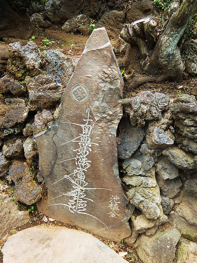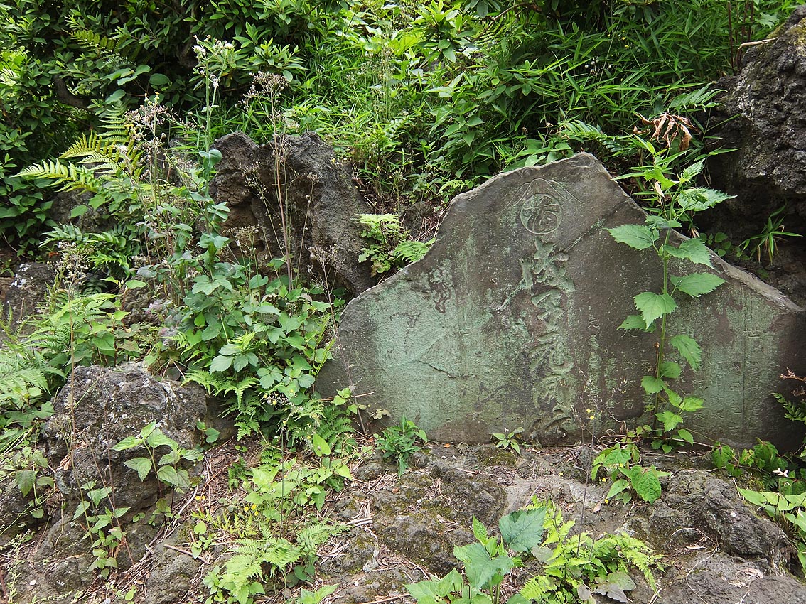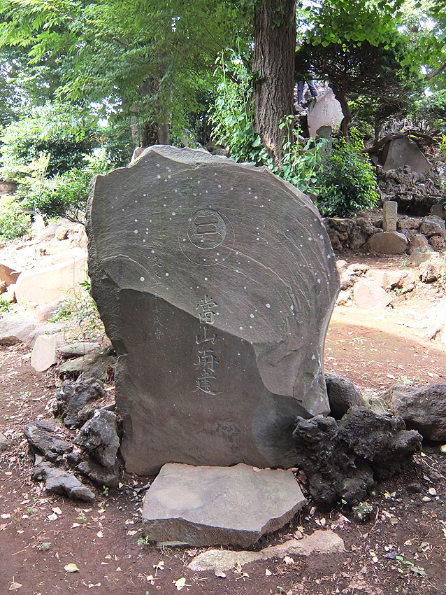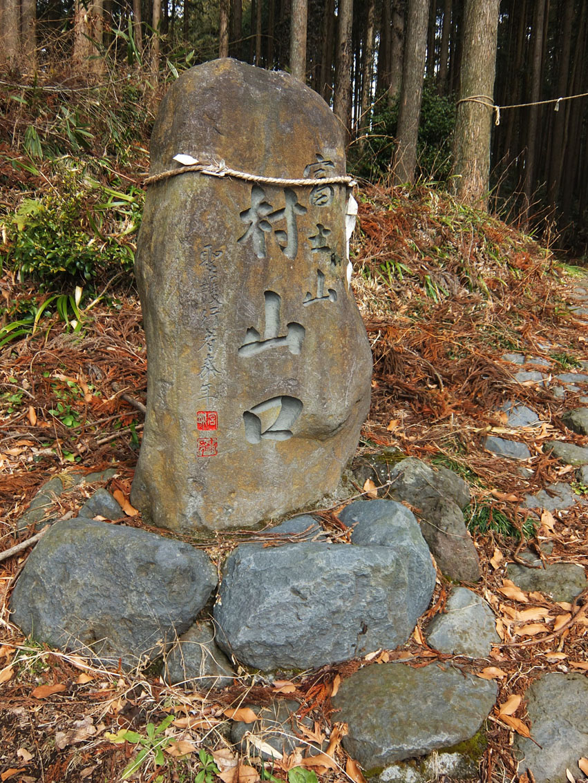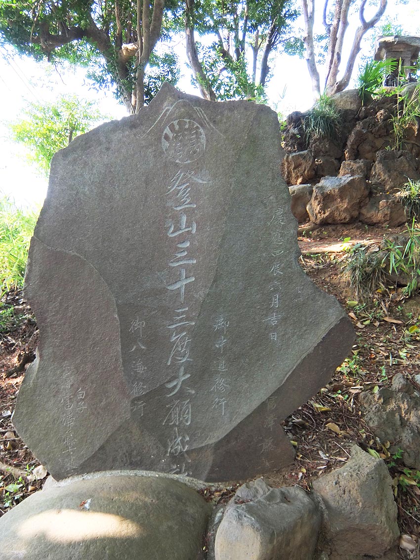 村山浅間神社の入り口には、「富士山」と深く刻まれた石碑があります。