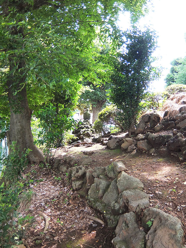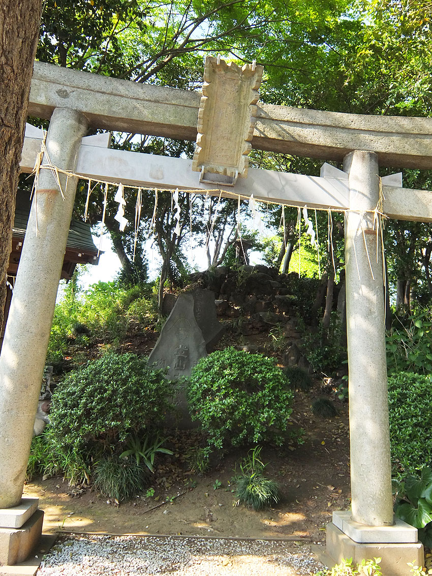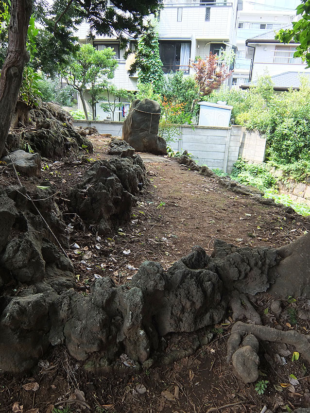 上赤塚富士(氷川神社)から崖線に沿って東に向かいました。 赤塚城跡のある台地(麓には板橋区立郷土資料館や板橋区立美術館あり)の手前、 奈落の底に落ちるかのような、樹木が繁る急な下り坂に吸い込まれます。 台地の端(崖下)には湧水があるものです。 板橋区立郷土資料館の横にも池がありますが、 南下したところにも「赤塚不動の滝」があります。 (東京大仏の近く) 滝は昔から水垢離の場でした。 赤塚不動の滝でも、富士山(や大山)へ出立する前には、 身を浄めたといいます。 富士塚の成り立ちは、(地域にも寄りますが) 武蔵野台地に関して言えば、共通の地形的条件があります。 ●「高台であること」⇒「ミサキの突端」⇒「神の降臨地」 ●「高台であること」⇒「南または南西向き」⇒「富士山がよく見える」⇒「富士山への信仰心」 ●「高台であること」⇒「崖の下には湧水がある」⇒「水垢離に適している」⇒「山岳信仰に密着」 上の条件を満たしている富士塚は、この近くでは 「江古田富士」「白子富士」「大泉富士」などがあります。 (湧水と富士塚のカンケイは密ですよ) 国道17号線(新大宮バイパス)を横切り、首都高速5号池袋線の すぐ南側の森(崖線にあたる)の中を登って、諏訪神社に到着。 田遊びで知られるこの神社の100m南に、浅間神社があります。 もと来た道を振り返ると、横断歩道の向こう側に諏訪神社の白い玉垣が見えました。 錆びた看板は、かろうじて「諏訪神社境内」と読めます。 飛び地なので、諏訪神社の境外社と言ってもいいでしょう。 この奥の、木がこんもりとしているところが富士塚です。 富士塚はかなりのボリューム。盛り土で築かれた塚でなく、 周囲を削って造ったものと言われています。 現在木々が伸び放題で、登山道は鳥居からの一本しか わかりませんが、中腹に積まれた溶岩から判断すると、 中道や他の登山道があったことも想像できます。 鈴原神社(富士山の1合目)、御室浅間神社(2合目)、 御座石浅間神社(4合5勺)、角行や食行身禄碑、日乃御子なども。 特筆すべきは、頂上から富士山が見えること! (すぐ西側のバイパスの外壁越しに) この日はかすんで見えませんでしたが、いつかまた。 Facebook あり〼