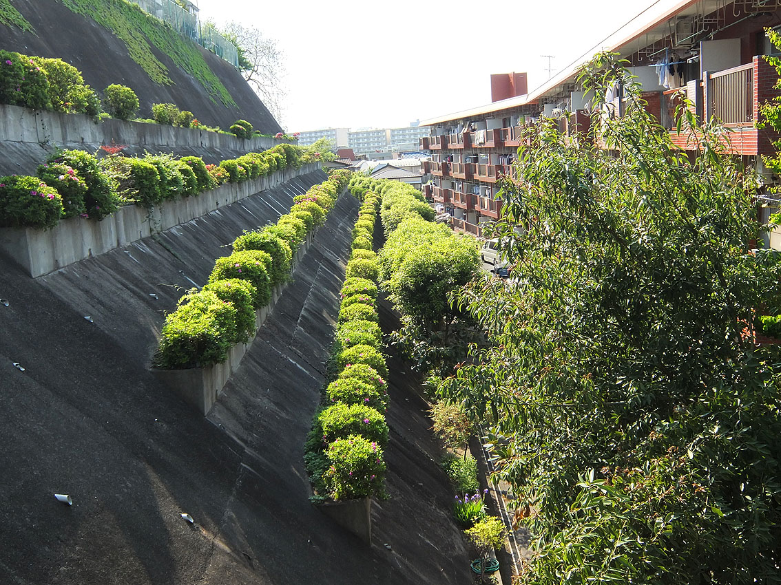 東上線の成増駅から北上してもいいけれど、 都営三田線の西高島平駅から南下すると、 面白い地形を味わえます。 板橋区は、北側の「荒川低地」と南側の「武蔵野台地」が 顕著で、その境の崖線(がいせん)に特徴があります。 板橋区作成のマップには、 緑色の崖線上に神社や寺院が記されています。 やはり神社はミサキに多いです〜。 (氷川神社は、左端から2つ目の赤丸です) Googleのサテライト画面は、実際歩いた部分をトリミング。 右上の西高島平駅から下の氷川神社(★印が富士塚)の間に、 影が濃く写っている崖線がわかりますね。 南側の台地に氷川神社があり、富士塚は二の鳥居近く。 立派な講碑、胎内(塞がれていますが)、 里宮、小御嶽神社、奥宮の祠も揃っています。 正面から登拝できそうですが、実は、ジグザグ道があり、 下練馬富士や江古田富士にも似ています。 Facebook あり〼