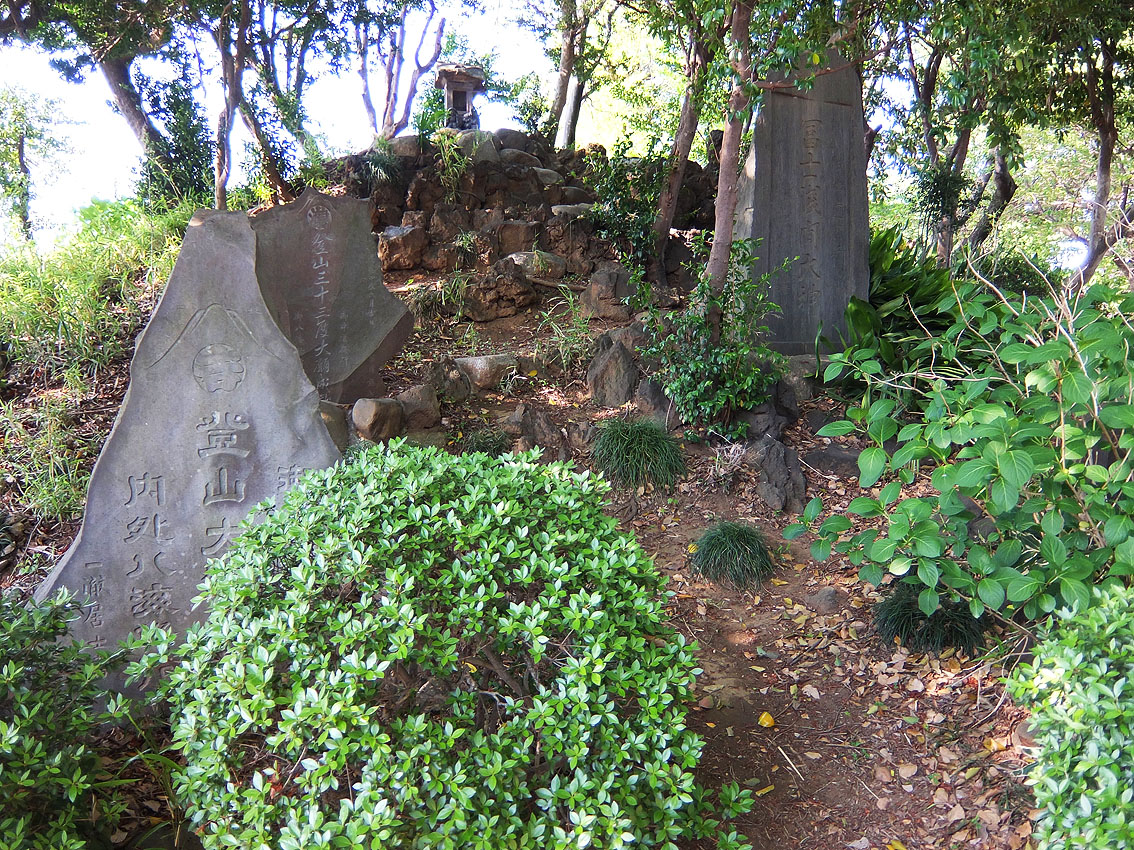 近年、神社の改築/敷地内のマンション建設/震災を経て、 (一時は塚の取り壊しも危ぶまれましたが) 現在はこのとおり。 修復後の成子富士は、とにかくすっきり。登りやすい。 最後にあるのは、昔の「岳人」に掲載されていたもの。 成子富士と高田宮元講、十七夜講、四谷丸参講、光山講の方たち だそうです。 Facebook あり〼